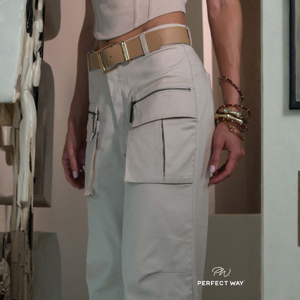 CALÇA LEVEMENTE FLARE FEMININA BEGE